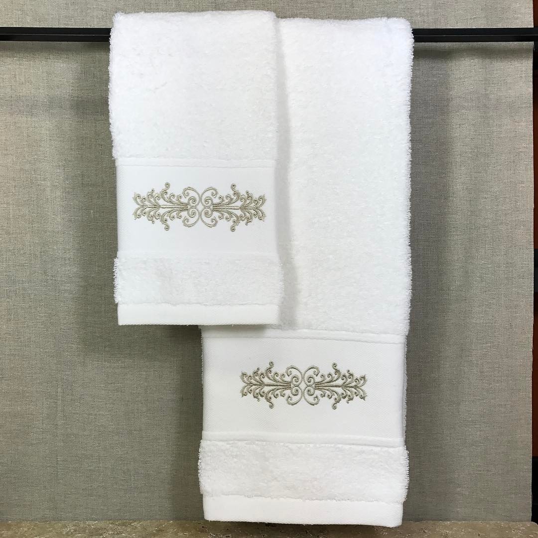 Broderie personnalisée, idéale pour sublimer vos draps, serviettes, nappes ou peignoirs avec des initiales, logos ou motifs exclusifs.